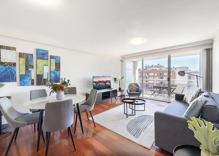 Premium Sydney City Escape appartement is binnen 5 minuten te voet van het winkelcentrum World Square en op 5 km van de luchthaven Kingsford Smith.